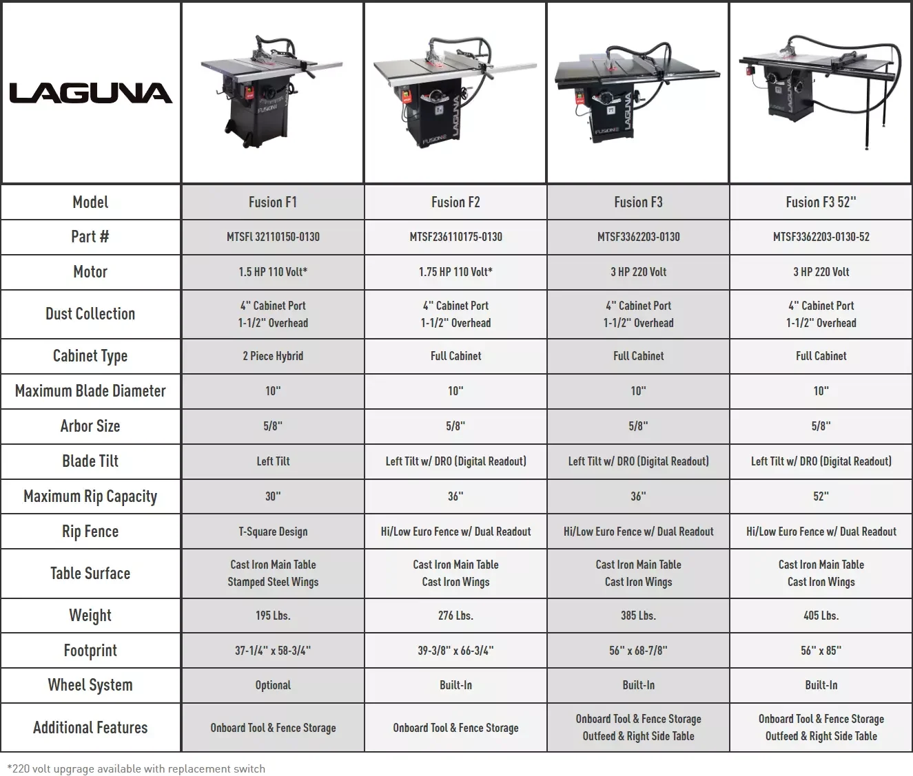 The new Laguna Fusion Table Saws are unlike any saw on the market. Having the same quality demands earned through the original fusion table saw, the new fusion line will not only impress but exceed the expectations you have come to expect from Laguna. With a completely redesigned trunnion and arbor controls that focuses on buttery smooth controls and longevity of the saw, we are sure this is the saw that will give you the perfect rip cut for many many years.